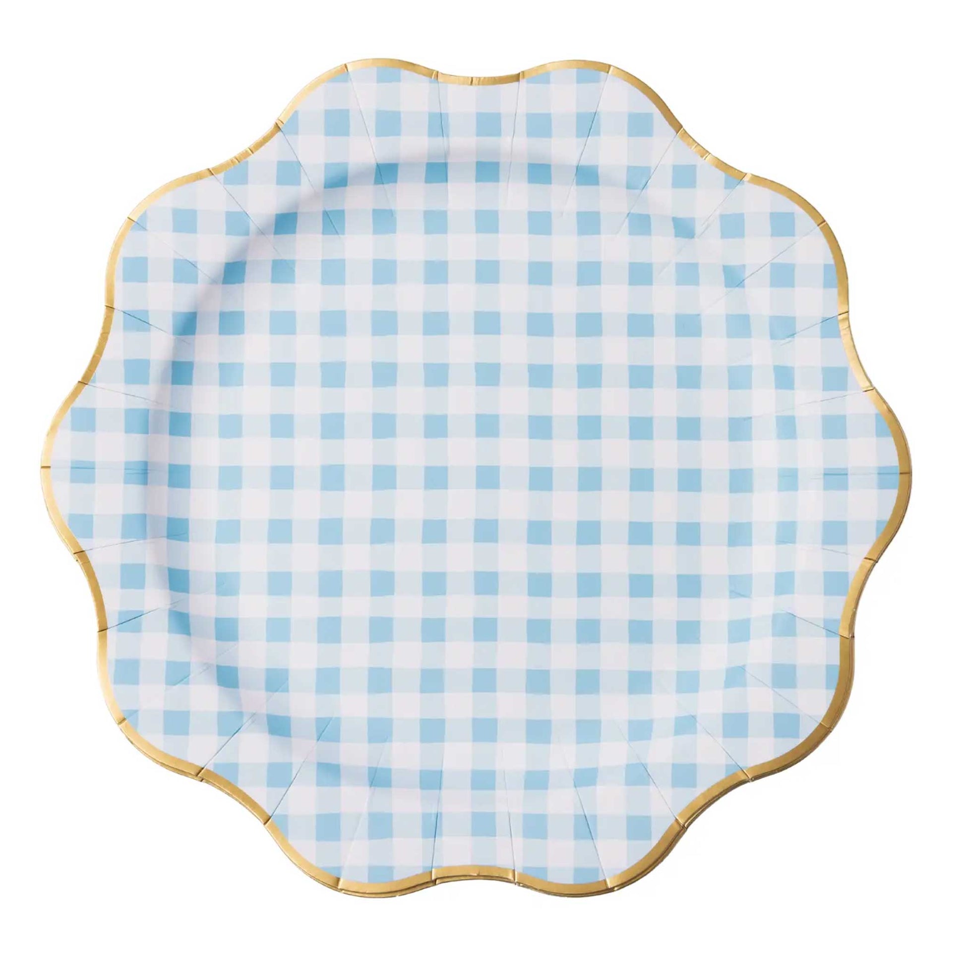 Add sweet sophistication to any event with these soft blue gingham plates, finished with a chic gold foil rim. Perfect for baby showers, tea parties, Valentine’s Day, and more.